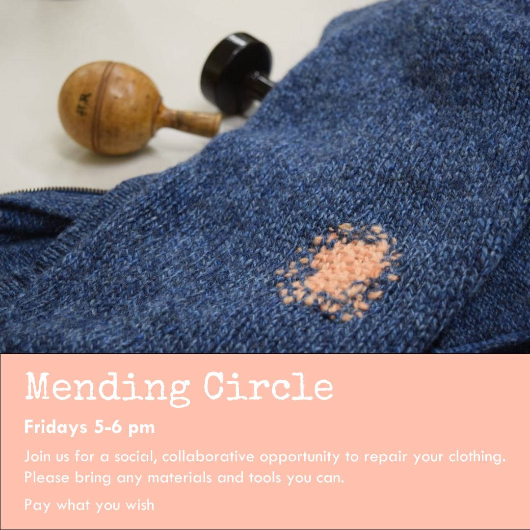 Do you have a pile of clothes you've been meaning to fix? Why not sew on that button or patch that hole in the company of other makers and menders? Come to Mending Circle, where we will gather, share ideas about repair, extend the lives of our garments, and hopefully make a dent in that pile!