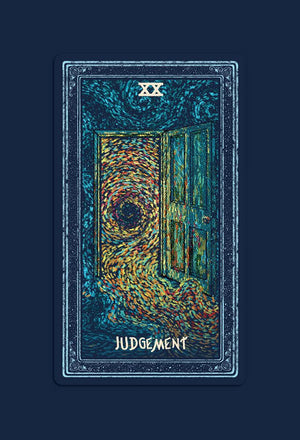 Yarn Over New York's take on Knitty City's 20th Anniversary Tarot: Judgement series. Jessie was inspired by the Prisma Visions Tarot Deck